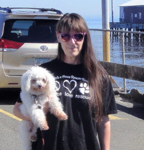 I spend my day taking care of animals. First thing is having coffee with my cat. He’s purring on my lap right now. Next is kennel cleaning at a sanctuary for unadoptable cats. Then attending to my one-eyed Peke mix. He needs medications and time to go potty. I try to get a long walk in every day. I am involved in community affairs so I have committee work. I also am working on some block prints. Since I live on an island somewhat isolated from the rest of the world, I keep up with friends and family through email and Facebook. I write in spurts of a few minutes to hours.